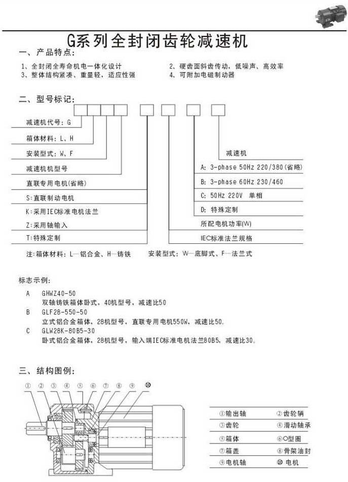 G系列全封閉齒輪減速機(jī)產(chǎn)品特點型號標(biāo)記結(jié)構(gòu)圖例