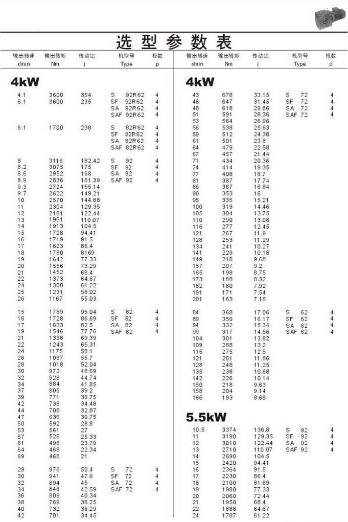 選型參數(shù)表4kW(續(xù))和5.5kW