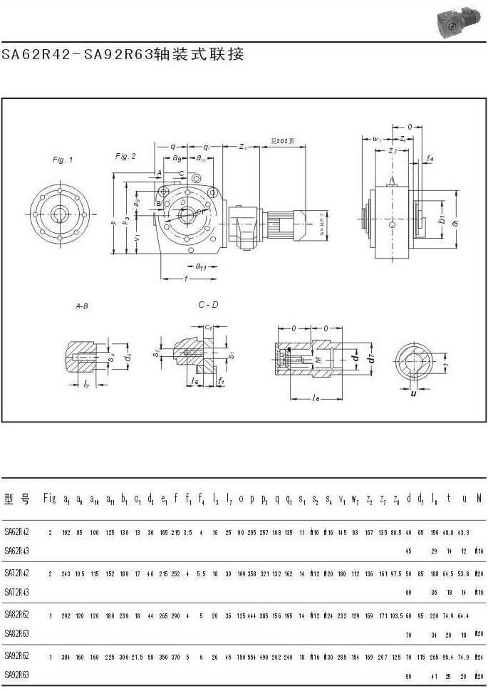 SA62R42-SA96R63軸裝形式聯(lián)結參數圖表