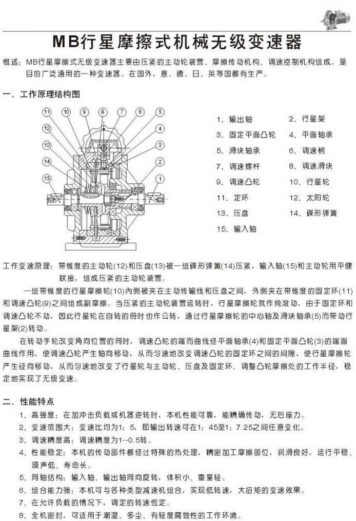 MB行星摩擦式機(jī)械無(wú)級(jí)變速器工作原理和結(jié)構(gòu)圖性能特點(diǎn)