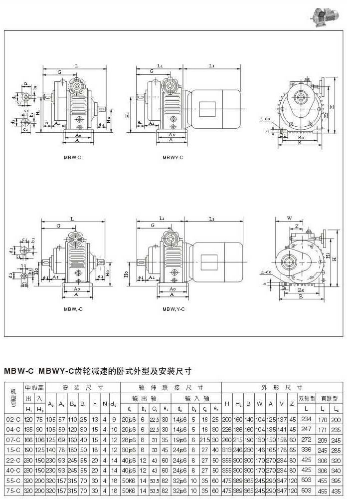 MBW-C MBWY-C齒輪減速機(jī)的臥式外型及安裝尺寸